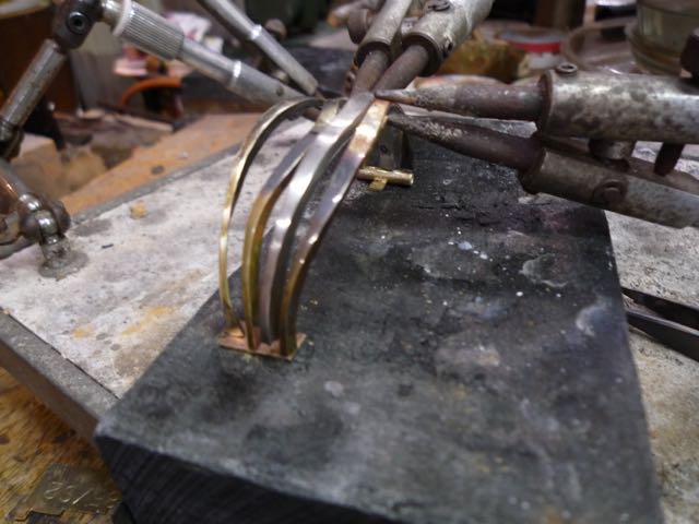 het contra scharnier aan de band en het duner scharnier klaar om er in gesoldeerd te worden