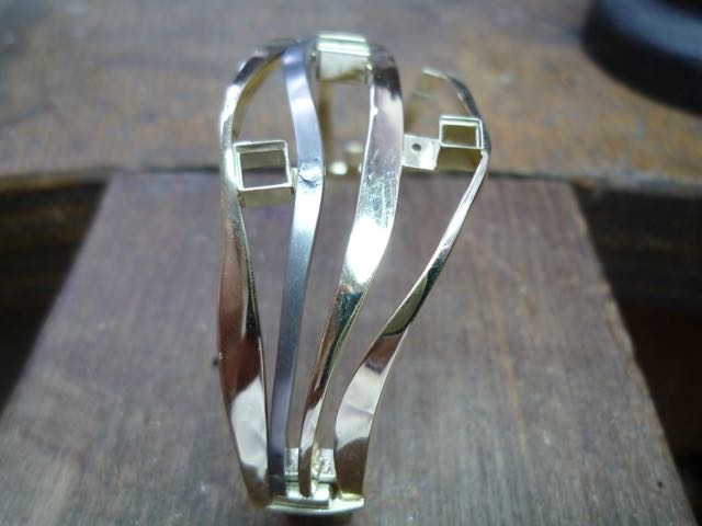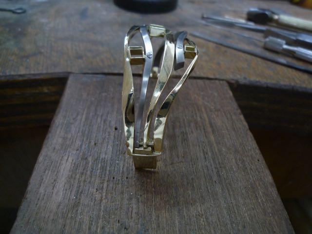 de armband bijna klaar en het gereedschap dat gebruikt is om te klinken