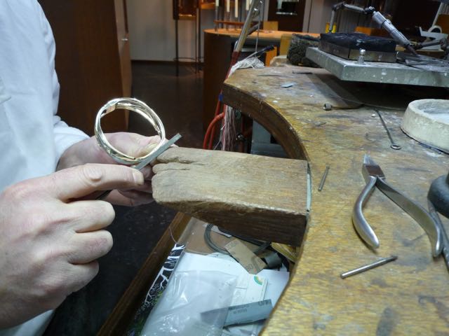dit stukje goud gaat een buis worden om de losse gouden delen te verbinden